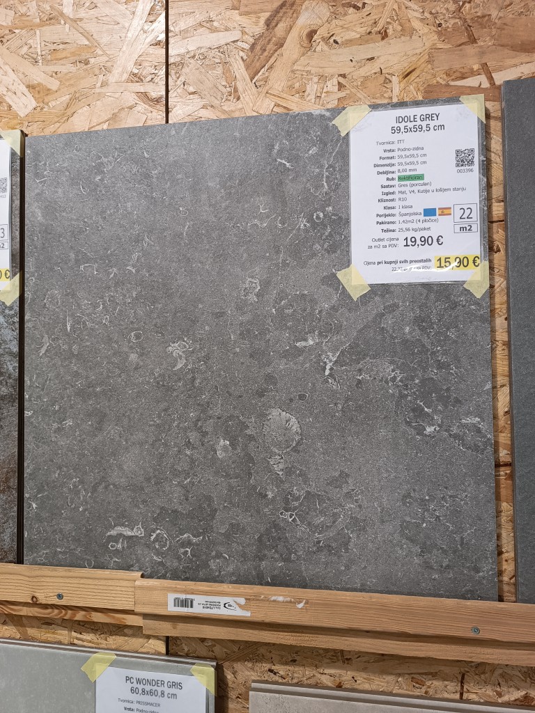 Cijena vrijedi isključivo pri kupnji naznačene preostale količine na paleti. Za kupovinu manje količine vrijedi cijena od 21,90 €/m²