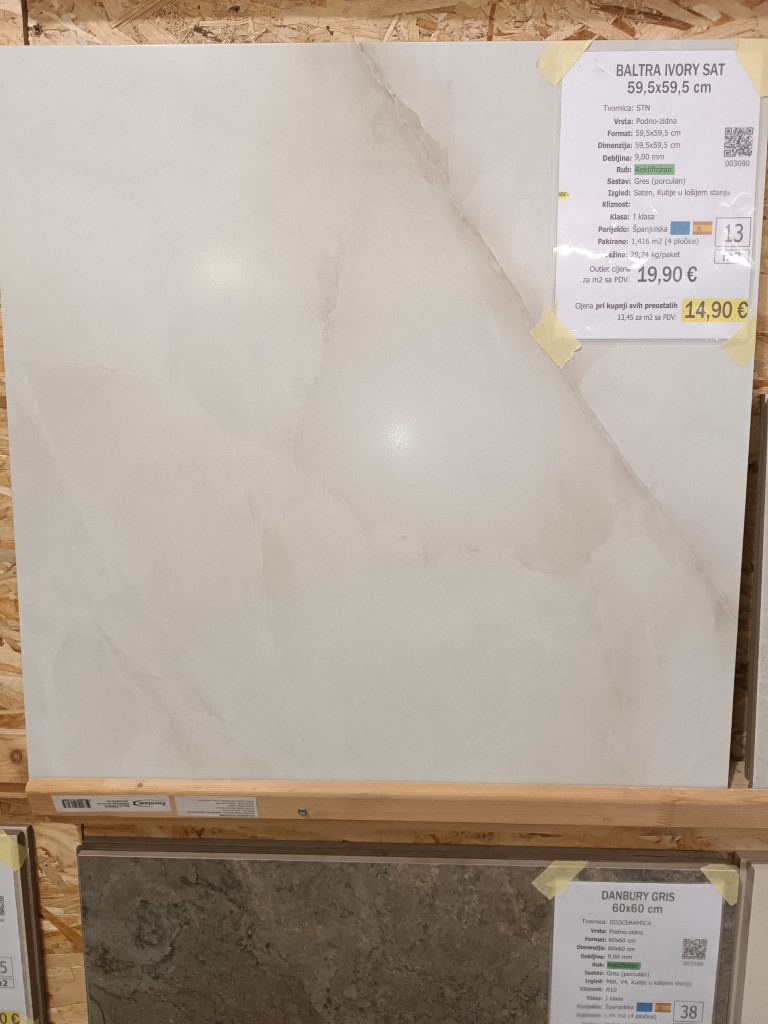 Cijena vrijedi isključivo pri kupnji naznačene preostale količine na paleti. Za kupovinu manje količine vrijedi cijena od 18,90 €/m²
